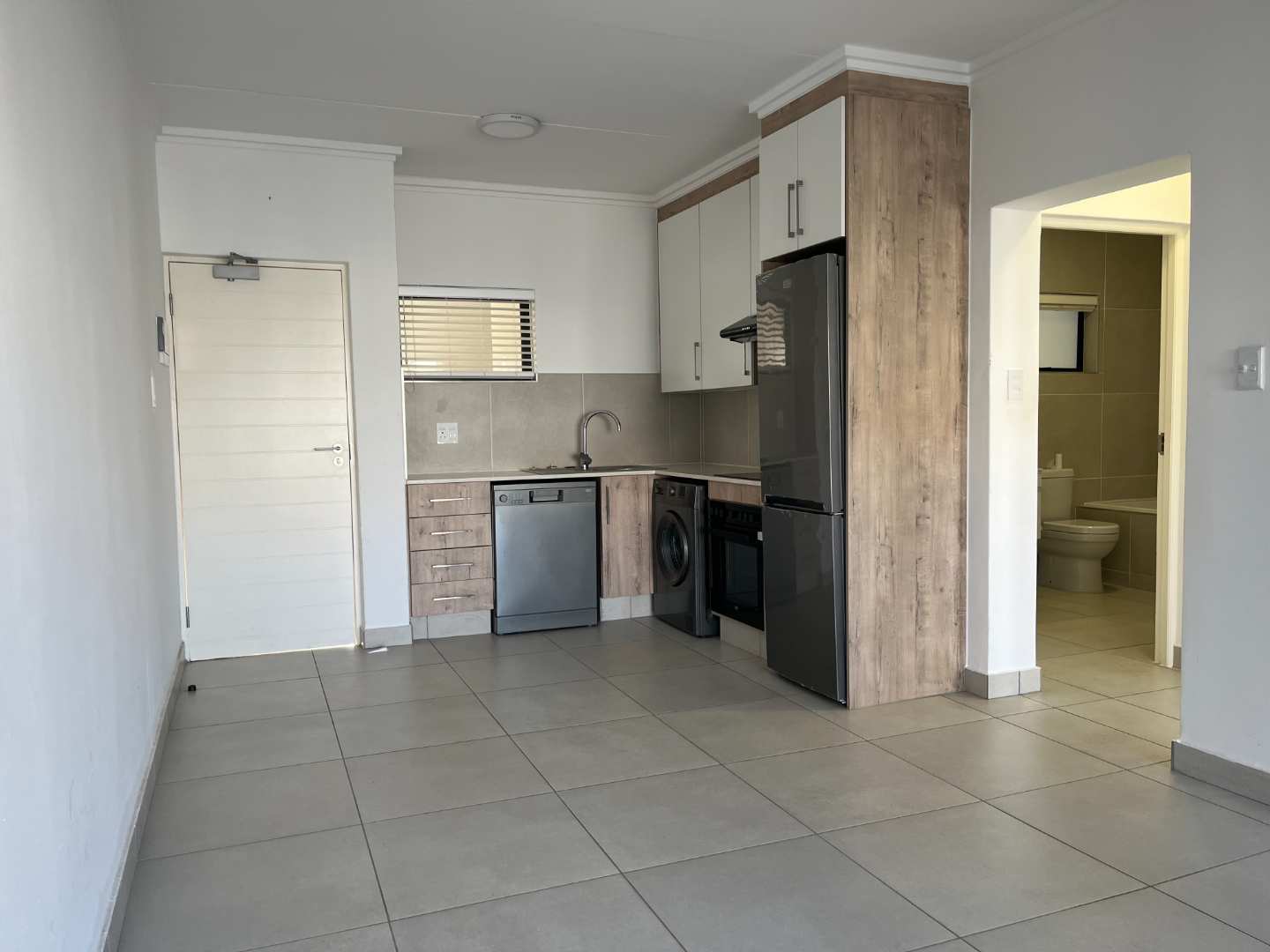 The main living space is open-plan, providing a comfortable area for a small lounge setup, possibly flowing seamlessly into the kitchen. The open layout helps create a sense of spaciousness despite the compact size of the apartment.