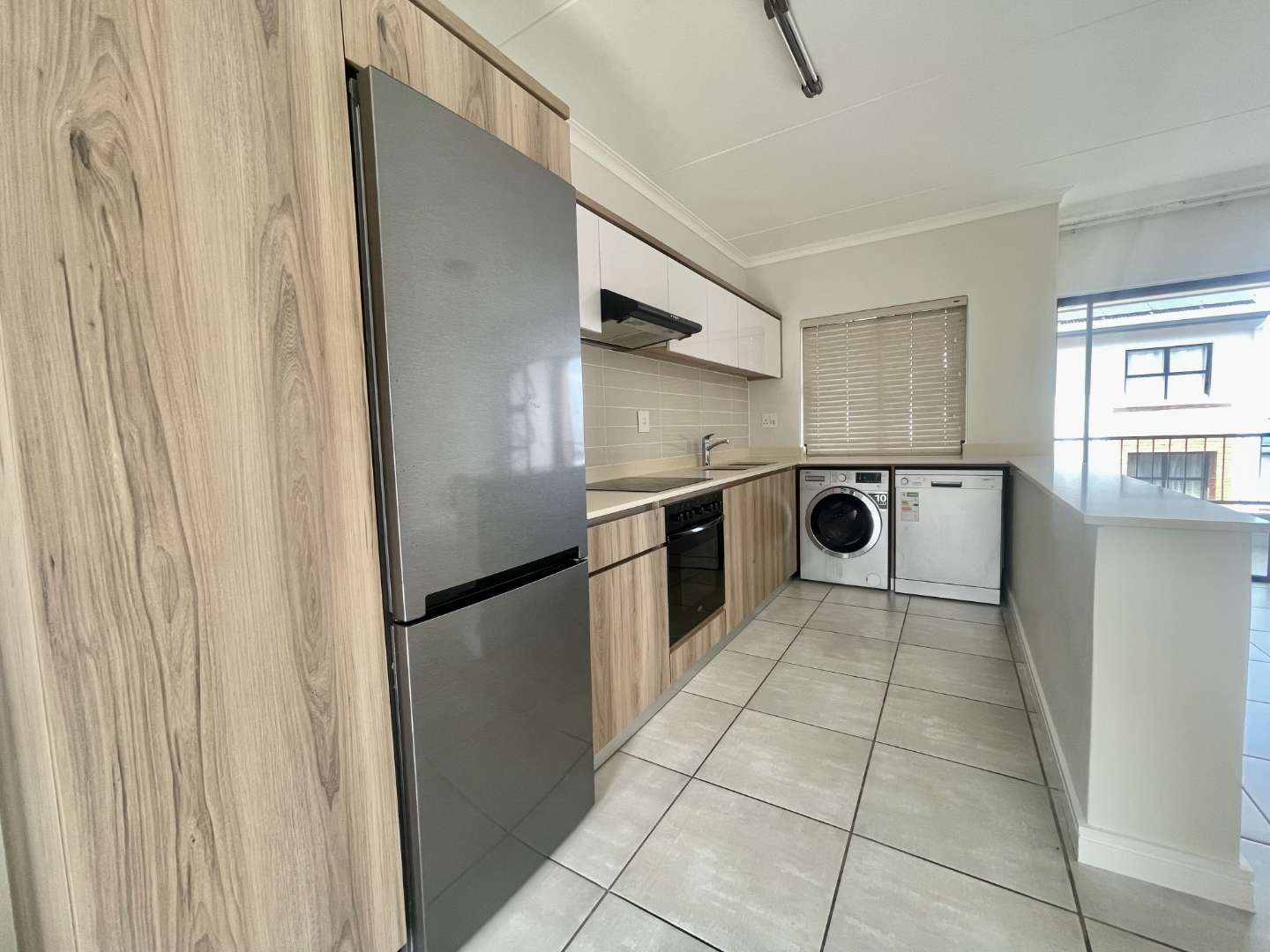 The open plan kitchen comes with a Fridge Freezer, Dishwasher and Washing machine and has ample cupboard space. The lounge leads onto a covered patio that serves as an entertainment area with built in braai.