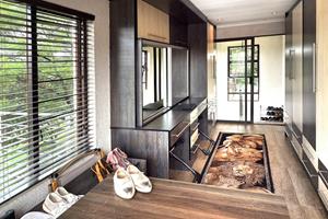 As you enter through the welcoming entrance hall, you are greeted by a spacious lounge equipped with air-conditioning, ensuring a cool and inviting atmosphere year-round.