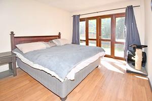 The bright and airy bedroom enjoys direct access to the garden through double doors, allowing natural light to flood the room and creating a peaceful connection to the outdoors. A full bathroom—complete with both bath and shower—adds modern convenience and style.