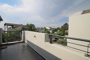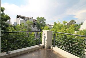 The bedroom is upstairs, with built in cupboards, and leads out to a large private balcony