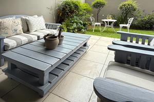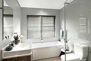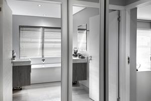 All three bedrooms are thoughtfully designed, with the main suite enjoying a full bathroom and serene garden views. A second full bathroom serves the remaining bedrooms, each with built-in storage and white french style blinds.