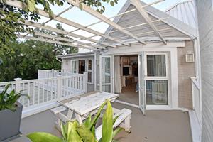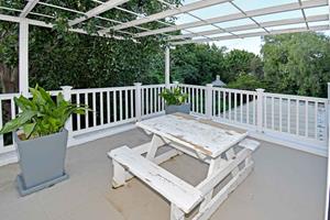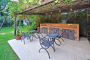The alfresco dining area, wrapped in grape vines beneath a pergola includes a gas braai and pizza oven. This is the perfect space for long lazy lunches or evening gatherings.