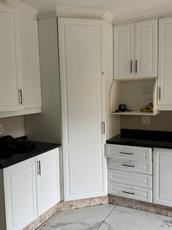 Kitchen with lots of cupboard space, granite tops; electric hob and oven.
