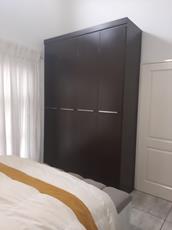 Both bedrooms are fitted with contemporary built-in cupboards, while the main bedroom includes an en-suite bathroom with a shower, basin, and toilet. The second, family bathroom is a full bathroom, providing convenience and comfort for guests or family members.