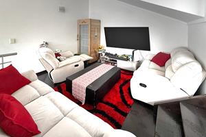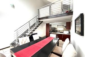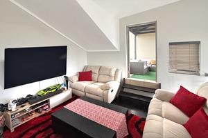 The loft area adds an extra dimension to your living space, perfect for a home office or an additional lounge. Large windows flood the space with natural light, creating a warm and inviting atmosphere that makes you feel right at home.