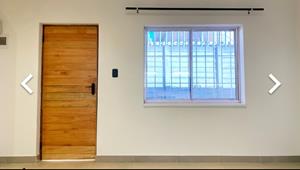 Open plan Lounge and kitchen with stove and ample cupboard space