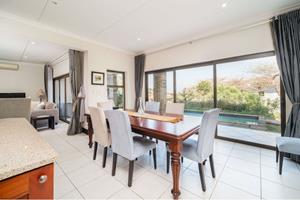 Prestigious Zimbali Coastal Resort offers an elegant fully furnished 3-bedroom split-level townhouse offers luxurious estate living with serene surroundings and distant skyline ocean views.