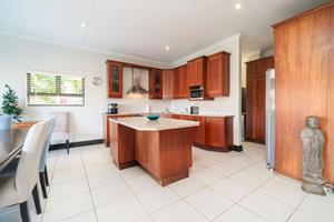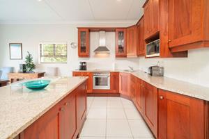 The open-plan living and dining areas flow effortlessly onto a covered patio and private splash pool, perfect for entertaining or enjoying Zimbali’s tranquil coastal climate. The modern, fully equipped kitchen features quality finishes and appliances.